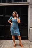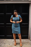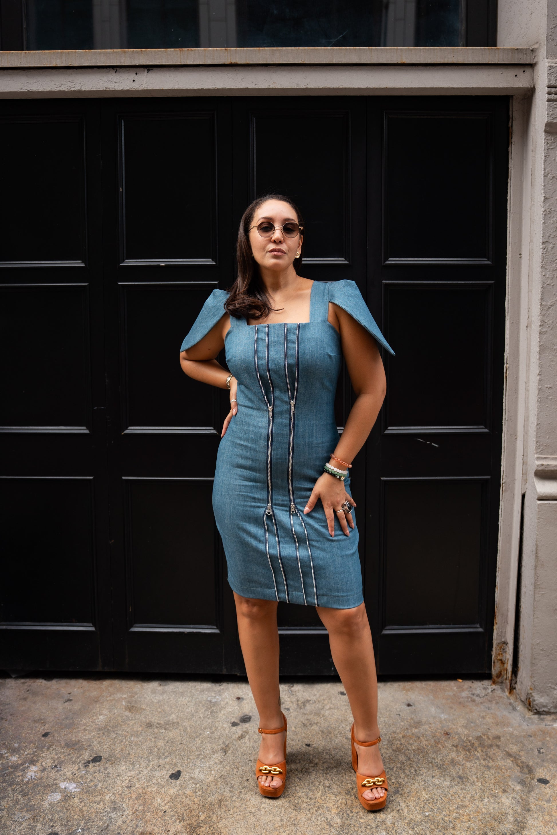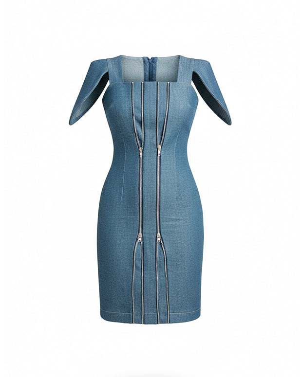 Redefine denim with a silhouette that celebrates every curve. This sophisticated midi denim dress is designed to adapt to your body — featuring dual front zippers that allow you to adjust the fit with ease, offering an expandable size for those days when comfort is key.